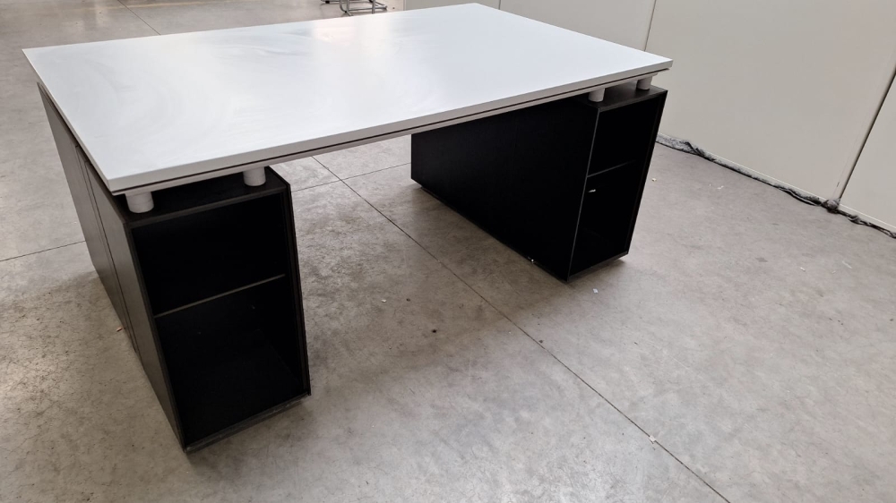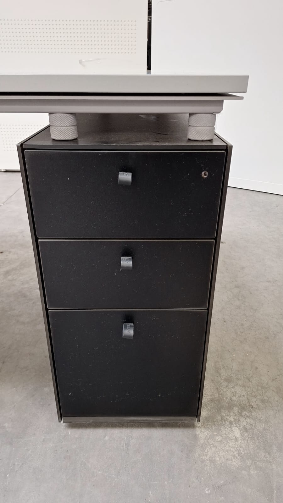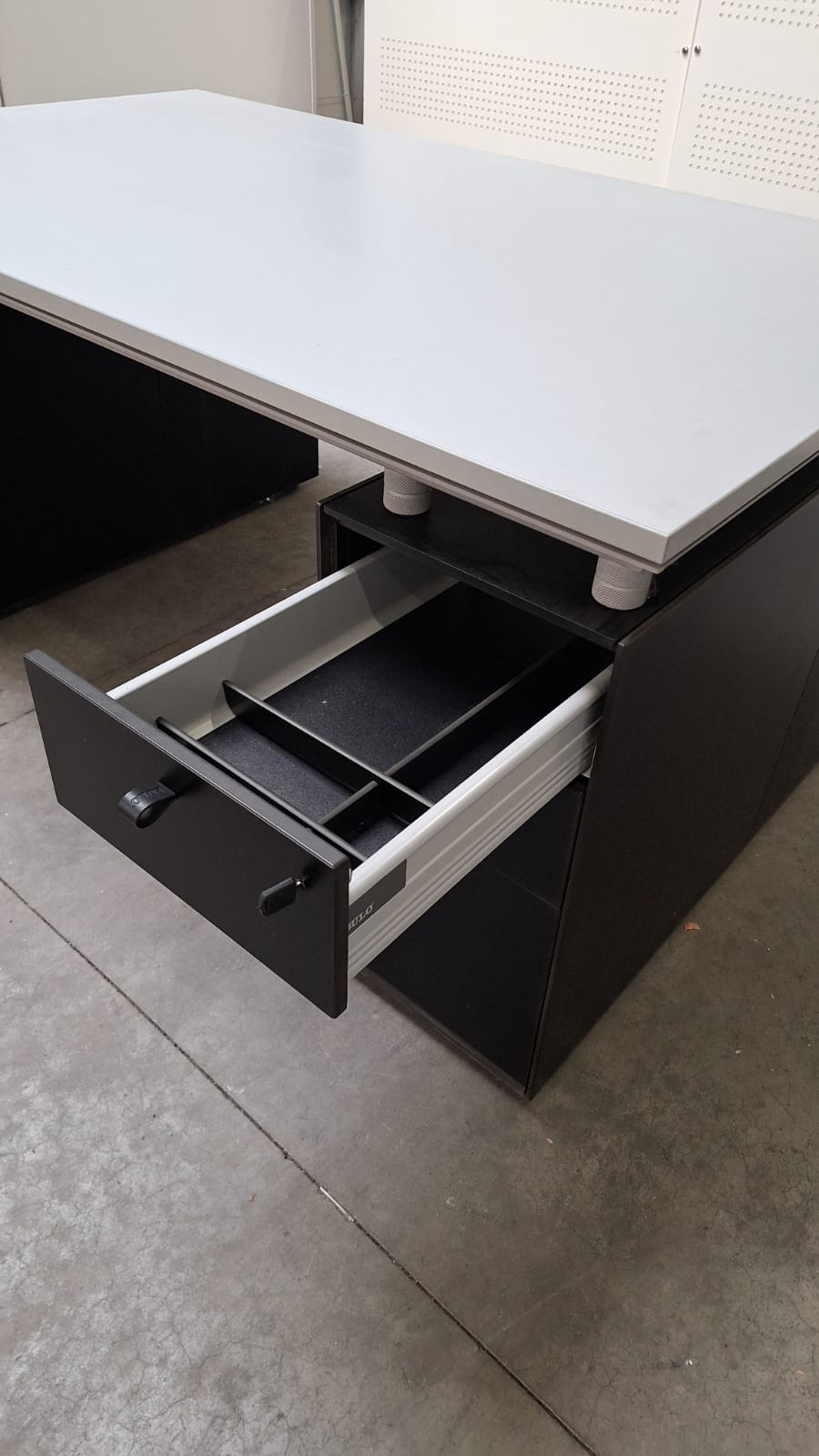 - 1 dragend ladenblok voorzien pc ruimte met pennenhouder (voorzijde) en deurtjes, achterzijde voorzien van legger maar zonder deurtjes