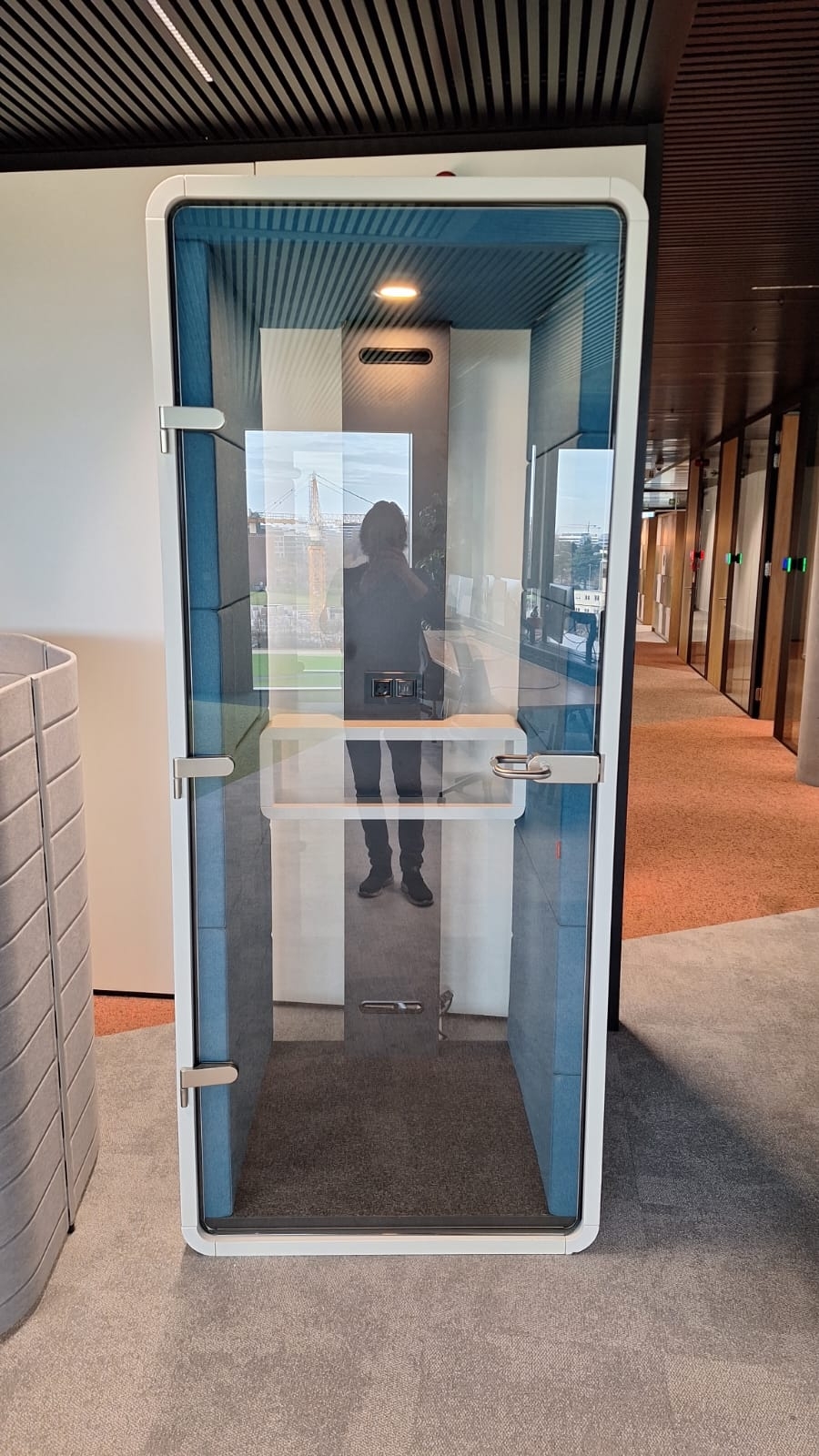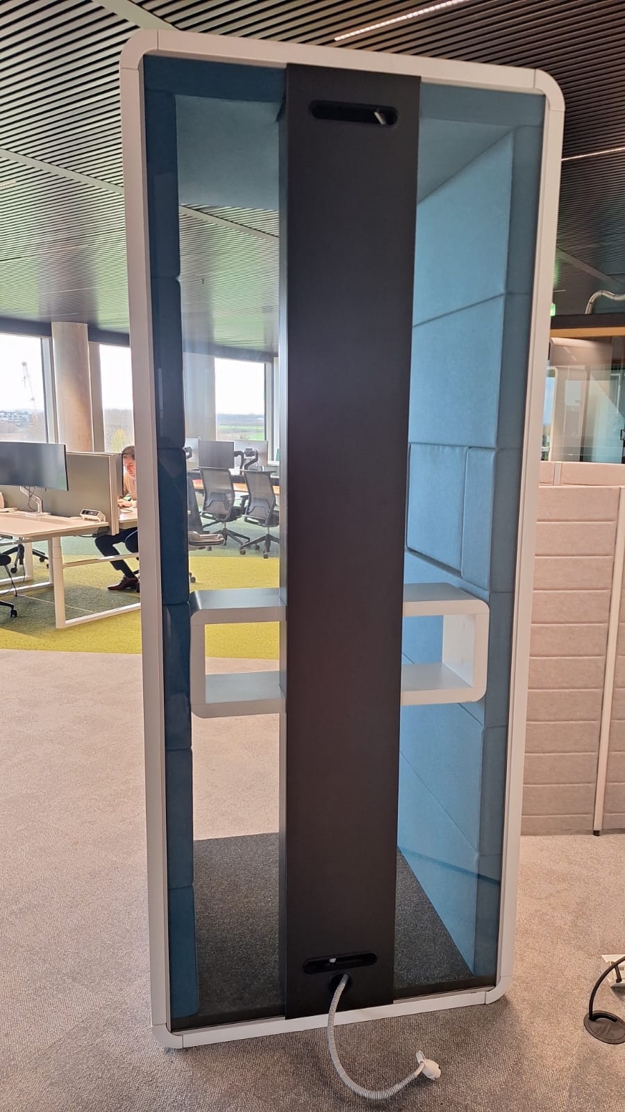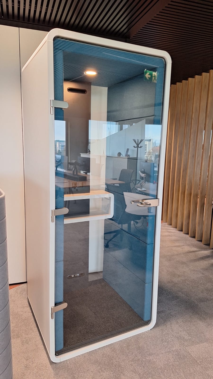 - Binnenzijde bekleed akoestische panelen in stof kleur Blauw