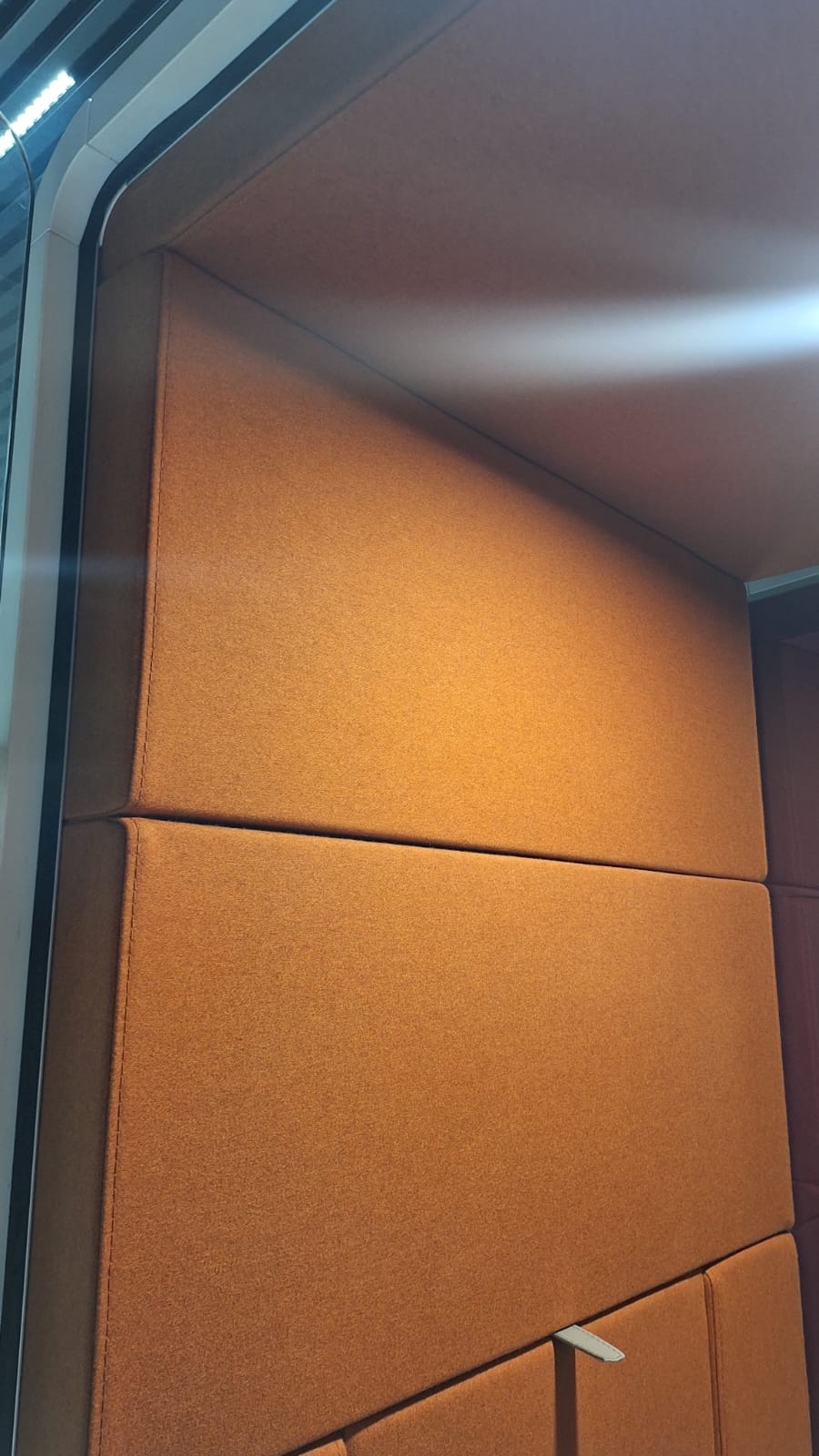 - Binnenzijde bekleed akoestische panelen in stof kleur Oranje