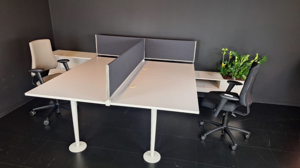 - Inclusief akoestische scheidingswanden bekleed met stof kleur Antraciet